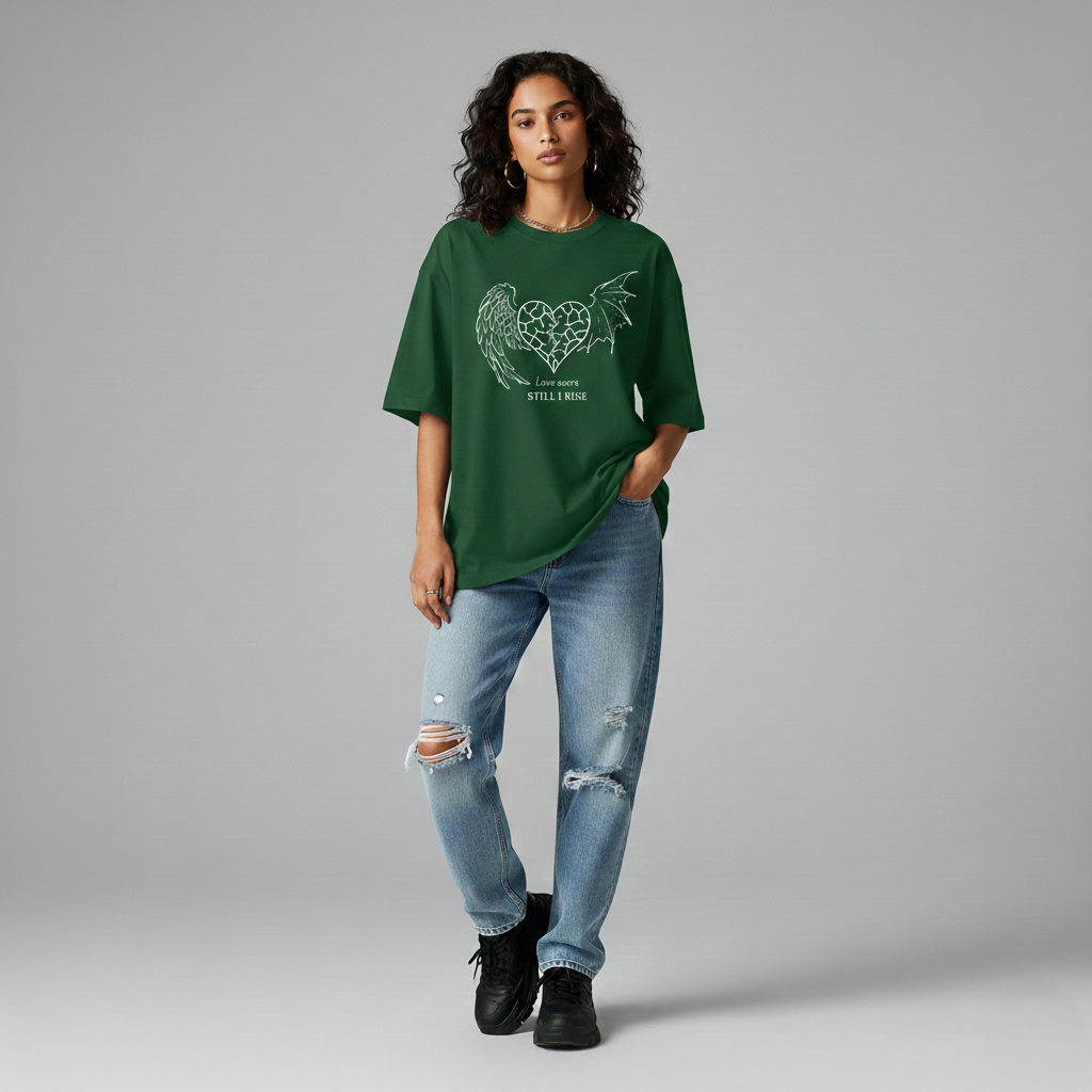 “Still I Rise” Graphic Unisex Oversized Classic T-Shirt- Bottle Green