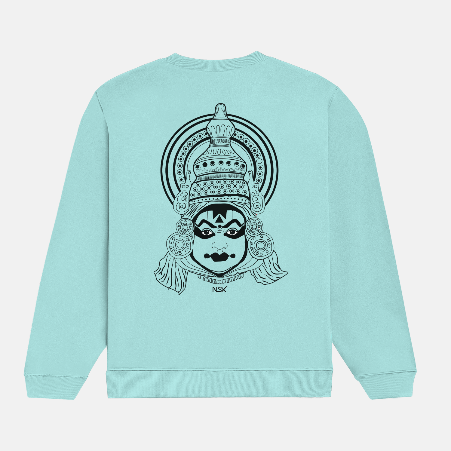 This unisex sweatshirt features a striking Kathakali-inspired line art — a tribute to Kerala’s timeless dance drama, reimagined with a raw, modern edge. The minimalist strokes capture the spirit, expression, and artistry of Indian roots while keeping it effortlessly urban.